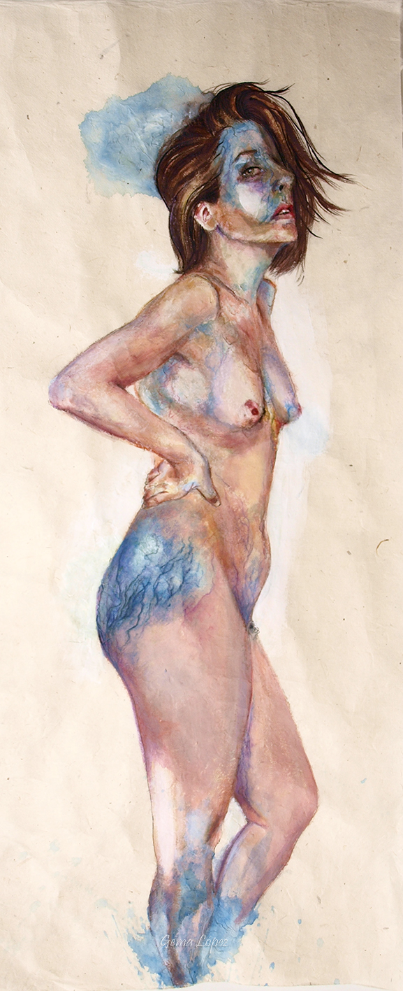 Agua, 2017 Comprar obra Técnica mixta sobre papel japonés 25 x 64,5 cm. 300.00€ Cuando lo que en principio es inocuo acaba colapsando